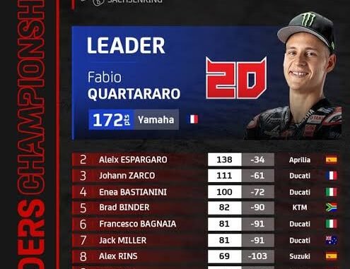 Bagania unfurled the checkered flag in 40: 14:332 seconds, 0.270 seconds from Ducati rider Enia Bastianini. Quartaro completed a 2.7 second adrift on the podium.